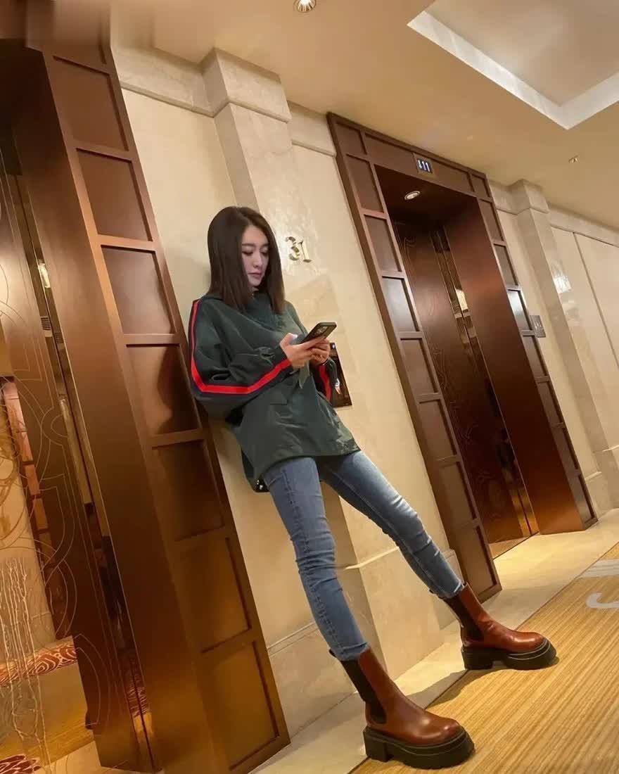 运动衣和牛仔裤的搭配,属于舒适又自然的日常穿搭风格,但就是如此简单的造型,依旧掩盖不住李小冉的绝顶美貌,而且除了穿搭以外,李小冉的发型也属于十分的自然状态,显得整个人更加随性了。